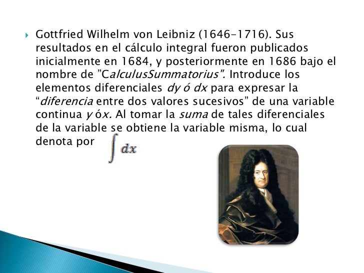 Gottfried Wilhelm Leibniz, junto con Newton, desarrolló el cálculo diferencial e integral en el siglo XVII. Introdujo la notación moderna para la integral, ∫, y su enfoque se centró en la suma de infinitesimales. Su trabajo sentó las bases para el desarrollo posterior por Riemann y Lebesgue.
